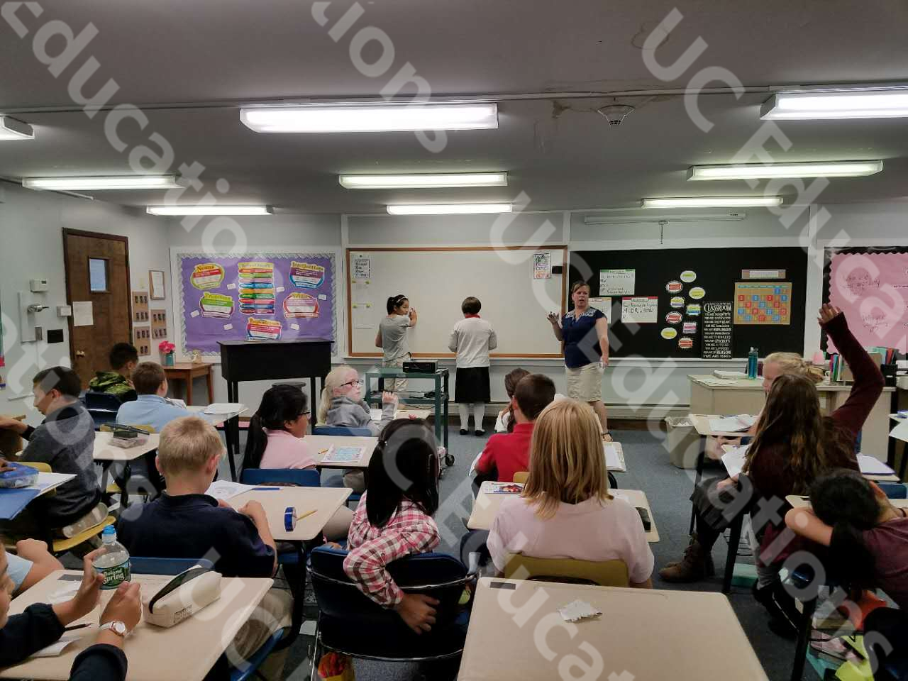 午餐时间,孩子们跟美国小朋友坐到一起,边吃边聊