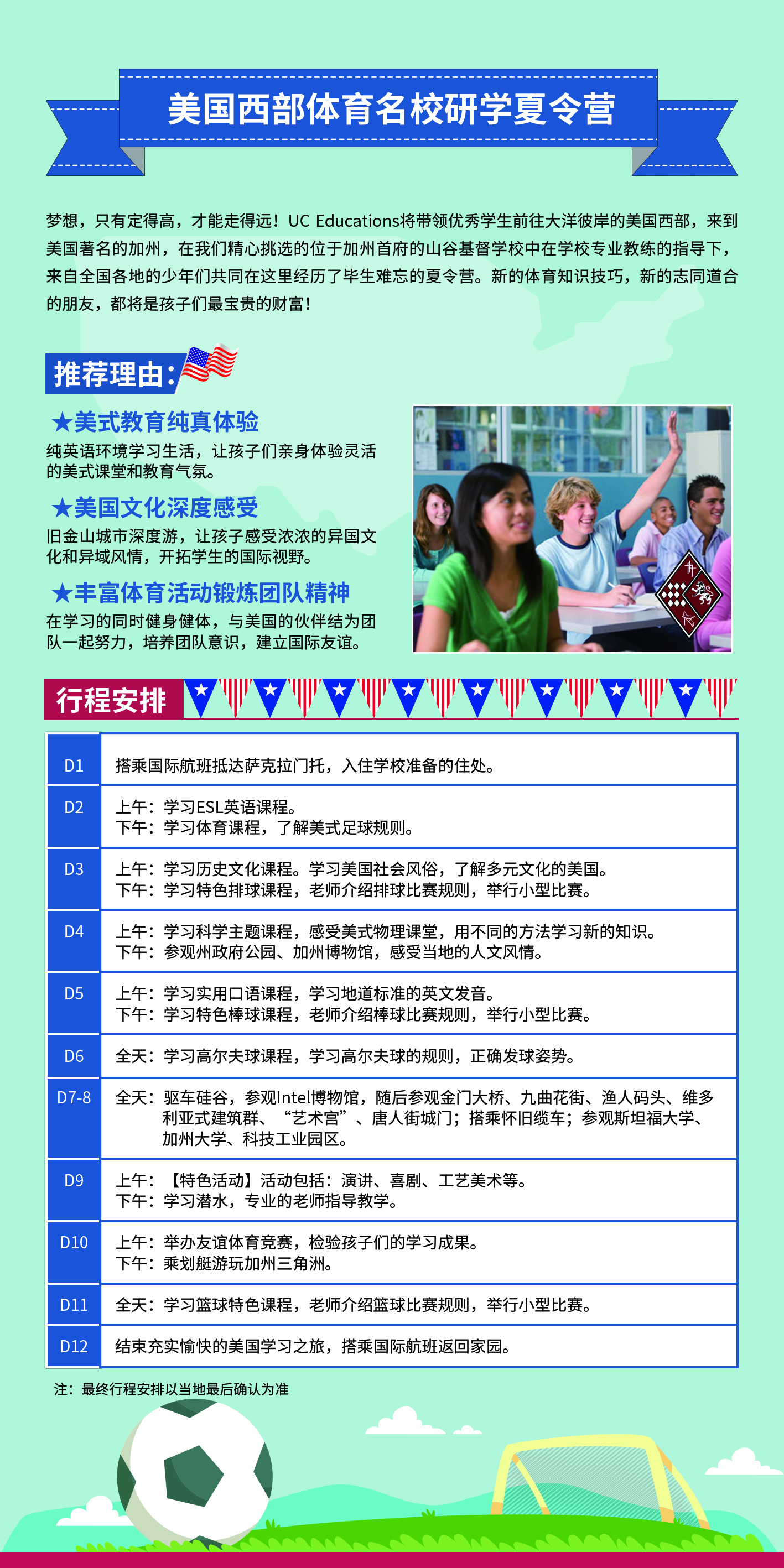 2) 学校升学率100%,80%的学生可以上加州大学各个分校。