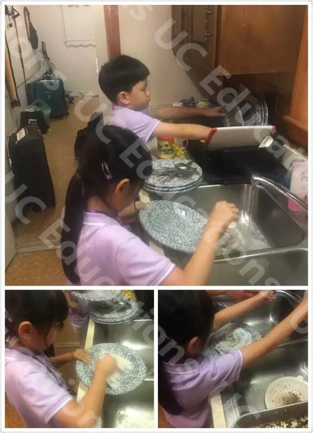 小留学生们主动清洗自己的餐具