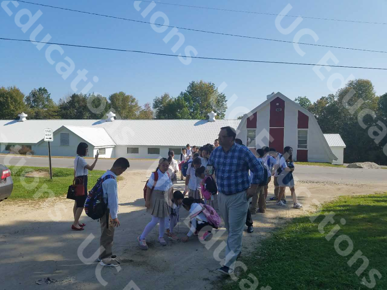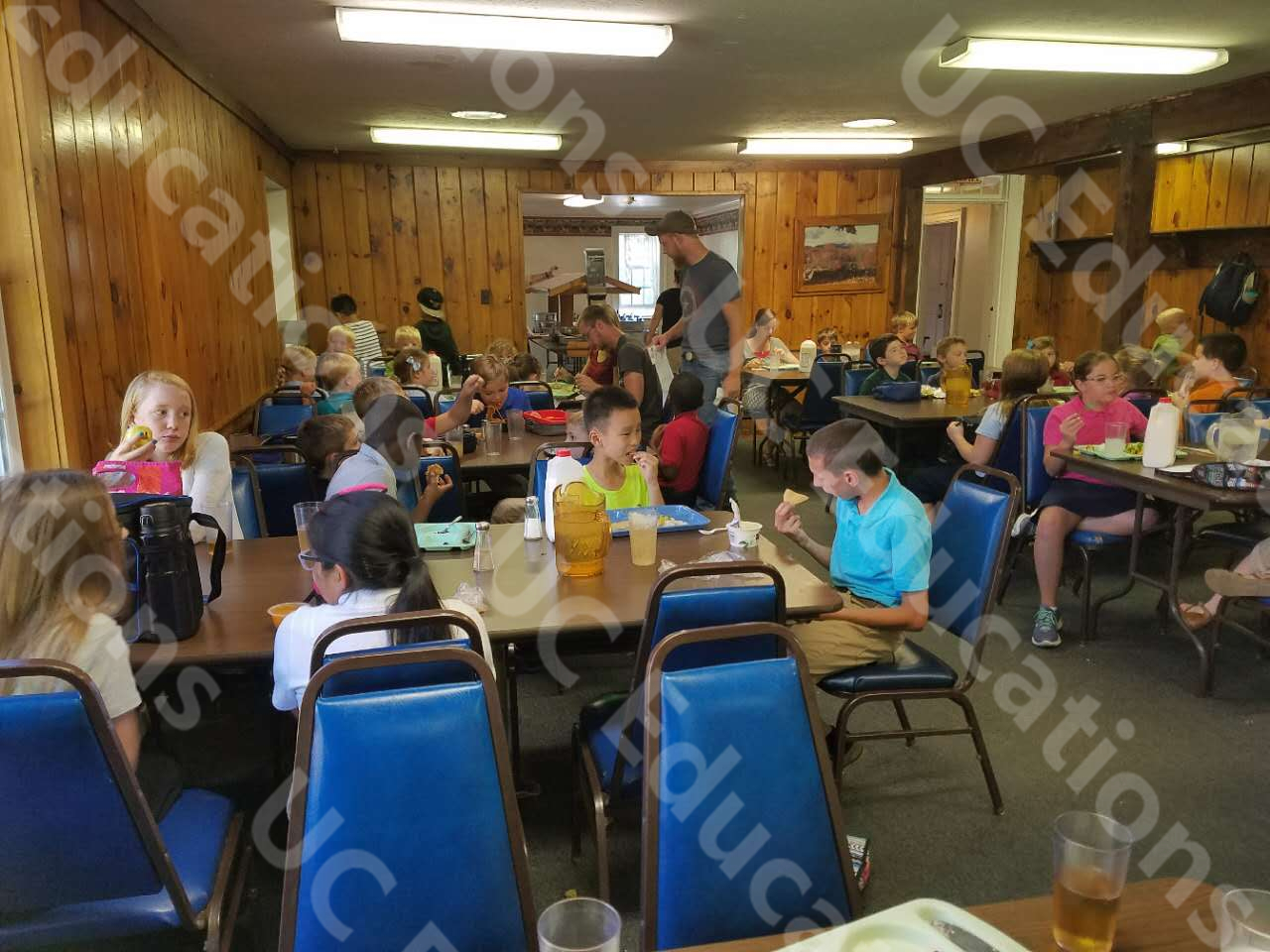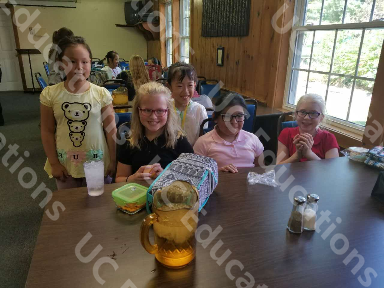午餐时间,孩子们跟美国小朋友坐到一起,边吃边聊