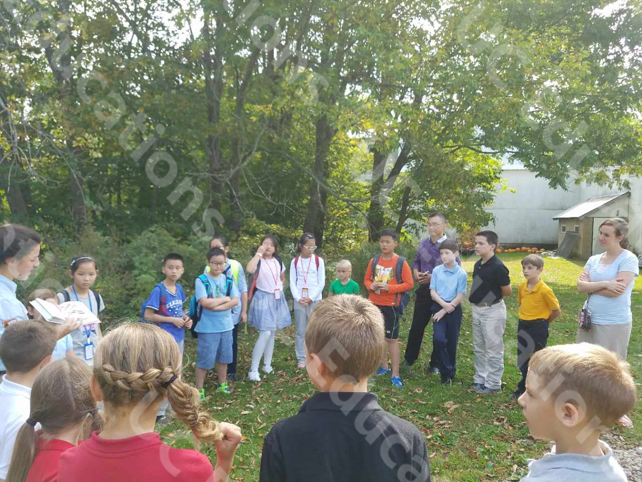 老师要求孩子们要把自己的见闻记录下来,孩子们边走边记录