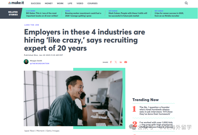 Bean补充说,科技和金融公司将在2025年加大招聘力度,原因很简单:为了抵消2023年和2024年这两个行业的裁员和保守招聘。同时根据计算机技术行业协会预测,美国科技岗位的增长速度预计将远高于平均水平。预测科技岗位数量将从2024年的600万增长至2034 年的710万。